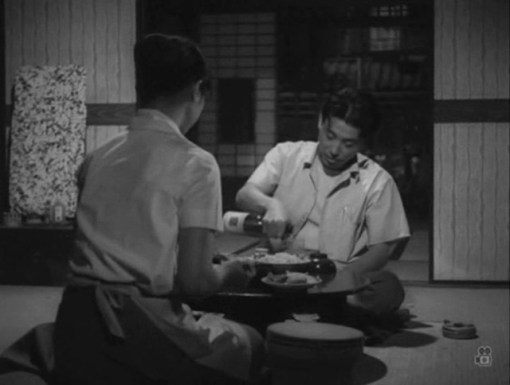 In my initial review, I never really got over the fact that such a couple would stay together. As Ryokichi shifts from one temporary job to another, his alcoholism worsens and his hatred for his father-in-law, Heishiro, deepens. Before, I mostly focused on the relationship between the struggling couple but on this particular viewing, it seems less and less important. Although the film is named after her, Anzukko’s actions tends to be just that of a middle man between her husband and her father. There’s something tragic in the fact that a housewife provides all the income for a family and ultimately gets no say in how it is used, but it seemed less of a “deal” this time around.