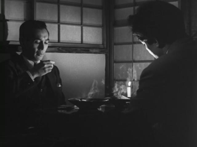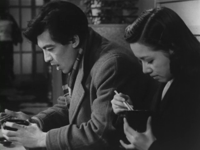 With all this said, there is still some positive things to take away from this film. Masayuki Mori is great again as a leading man in a Kinoshita film as Taro and Toshiko Kobayashi is very charming as Akiko. Not to go back to basing, but it is a shame she didn’t work with too many directors other than Kinoshita. As this is the case, I still have some reason to continue with his filmography. Here’s a (non) surprise: the film’s cinematography from Hiroyuki Kusuda. There’s a few impressive pans, but the most notable sequence seems to be a long(er) static shot where Akiko and Nonaka finally embrace. Toichiro Narushima, who would later serve as a cinematographer for Oshima and other New Wave filmmakers, served (uncredited) as an assistant director. While the film is still very much Kinoshita and grounded in something more traditional, it does have some visual flourishes that anticipates the next generation.