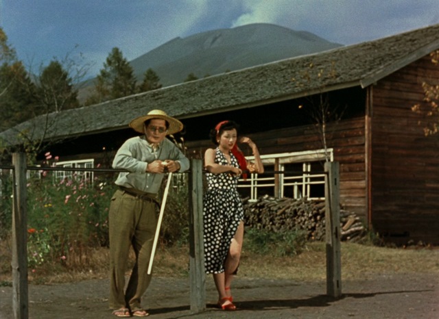 Kinoshita’s script paints with rather broad strokes, establishing a binary immediately between rural and urban life. To his credit, we never see Carmen and Maya’s life in Tokyo so all of this characterization of city life might be a inward critique of the small village’s own ignorance of it. On the other hand, that would be giving Kinoshita too much credit when he continually sympathizes and places himself with the perspective of the villagers. It’s the same characterization made in Murnau’s Sunrise. The city and its materialism represents evil and decadence. The rural village is return to the simple, idyllic life that we should aspire towards. To Murnau’s credit, he critiqued this himself in his own film, City Girl, which paints both spaces as having their strengths and weaknesses. The reality comes in what you yourself do with the space your given, which sounds like some neoliberal “pull yourself up by the bootstraps” rhetoric, but it’s not. To be more blunt, this type of binary isn’t exactly false (farm life is different from city life, sure) but it is instead represented in such a one-dimensional way that it becomes characterization tools for the actual characters in the film.
