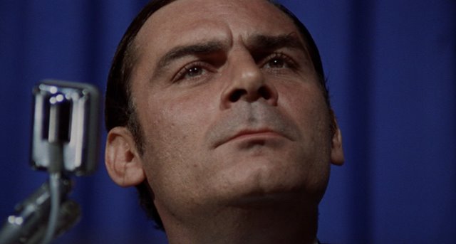 In his essay on the film, Evan Calder Williams mentions that the lack of any female presence in not only Petri’s film but in other radical films of the period is a limitation and a problem. He’s absolutely right. The two Petri films I’ve seen have zero female characters with any agency, and while I acknowledge this as the problem it is, I find it saying something interesting in this particular case. The nameless inspector here murders his mistress, and one of the contributions to this act is his jealousy of her new relationship with a young radical, Antonio Pace. Pace knows the inspector is the murderer, but instead of being outraged, he seems almost gleeful. Upon recognizing him as an agent of the state, he begins to smirk. He’s not at all upset or distraught that he’s lost his lover, he’s ecstatic because her death is just more information to throw against the police state.