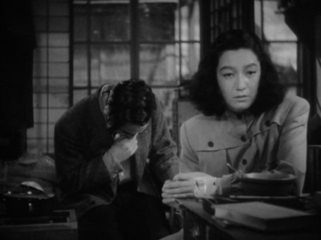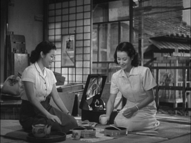 Shingo and his son, Shuichi are joined at home by their respective wives. Kikuko, presumably still in her 20s, is dutiful to her father-in-law but reciprocates the cold indifference she faces from her husband, Shuichi. Quickly, we learn that Shuichi’s sexual concerns are elsewhere, first we see him keep up a casually flirtatious relationship with his secretary and later, we learn that he’s having an affair with a dancer named Kinu. He grows increasingly frigid to Kikuko, who greatly enjoys (and prefers) the company of her father-in-law. Meanwhile, her sister-in-law, Fusako moves in with her children as her husband has once again abused her trust.