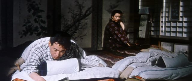 It makes sense that Naruse’s first feature filmed in color and in Tohoscope would take place away from the city center. It wasn’t the first time he went “rural” so to speak (nor would it be his last) but the new technology offered his technique something that didn’t immediately click with the aesthetic of his “city films.” This seems like a preposterous statement to make when one considers the Tohoscope beauty of When a Woman Ascends the Stairs, which finds the filmmaker back in the urban realm. Here, though, the technology seems especially compatible with the way he opens up space. Of course, Summer Clouds is still about the city, but its conversation on “the city” uses the vocabulary of rural peasants.