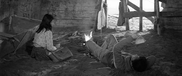 Urayama sets up a melodramatic love story, a would-be apprenticeship between the titular “bad girl” and the optimistic scholar returning from the big city. Everything is drawn broadly here. The ridicule that Wakae faces seems stretched out for a fifteen year old girl. Yet, the film establishes that she’s already spent most of her life with her youth undervalued or unseen by those surrounding her. The implication of past sex work sets up a bulletproof explanation for a population of lecherous drunks that Wakae ignores in favor of the “new life” that Saburo’s interest promises. If the film unfolded in such a way, I would roll my eyes and dismiss it. But it switches from a set-up where Saburo is a master then lover to one where he is woefully unprepared to provide for Wakae. He might love her, but love is not enough for the forces bearing down on the couple. Their repeated misses with each other might read to some as graceless narrative developments, but they flesh out a romance that is initially lacking in explanation.