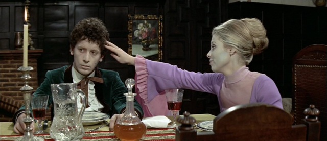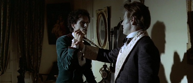Again, though, I must emphasize the strengths of the film. This was Fassbinder’s first collaboration with Michael Ballhaus and the harsh austerity measures inform some of the sharpest colors achieved in their respective careers. The blackface/whiteface distortions present throughout points to the discourse on race, but it suggests a formal dedication that privileges individual compositions over the context of space. It formally recalls the similar dedication of Ozu and his red teapot or Antonioni and his repainted trees in Red Desert, but it is balanced by a perversity that resembles Paul Morrissey’s high-camp horror experiments that came two years later. As I mentioned earlier, such divergent influences suggest either a messy experience or a writer all too eager to namedrop, but in Fassbinder’s hands it makes perfect sense. Despite all the names scattered throughout this review, the truth is that only Fassbinder could make a film like Whity.
